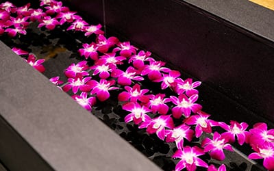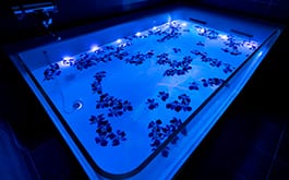 クリスタルの浴槽と照明で幻想的な空間を醸し出します。